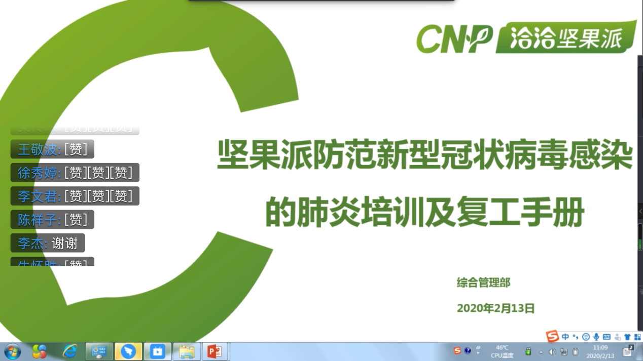 2月13日,目前全國抗擊疫情進入關鍵時期,堅果派也不忘使命、加緊步伐,利用釘釘網絡直播平臺分別開展了全員《安全生產管理培訓》及《防范新型冠狀病毒培訓》,調整員工工作狀態,保證組織安全、健康、平穩的運行。